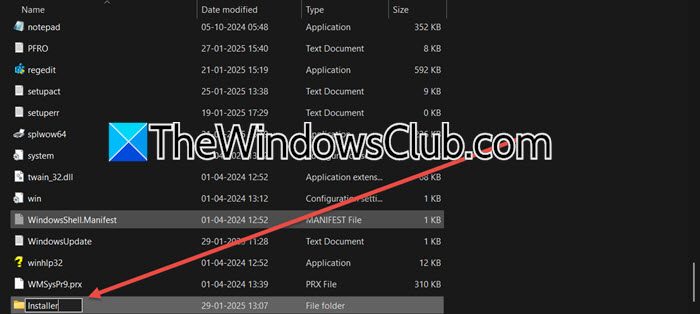 Como estamos enfrentando um problema ao tentar instalar um aplicativo, existe a possibilidade de haver algum problema com a pasta %windir%/Installer, recomendamos que você renomeie-a e crie uma nova.Instaladorpasta dentro do mesmo diretório. No entanto, como %windir%/Installer é uma pasta do sistema usada pelo Windows Installer para armazenar arquivos importantes para aplicativos instalados usando a tecnologia do Windows Installer, renomeá-la não é o mesmo que renomear qualquer outra pasta. No entanto, você pode executar os comandos mencionados abaixo para renomeá-lo.