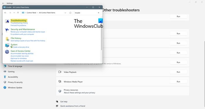Abra os solucionadores de problemas do Windows no Painel de Controle do Windows 11/10