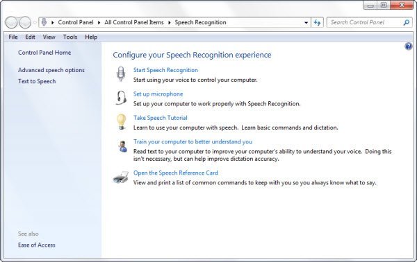 Se desejar usar o recurso Reconhecimento de Fala, em vez de usar o mouse e o teclado, clique em Usar Reconhecimento de Fala.