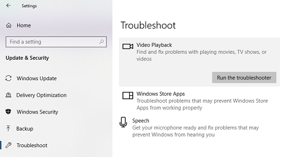 Vá para Configurações > Windows Update e segurança > Solução de problemas > Reprodução de vídeo > Execute o solucionador de problemas.