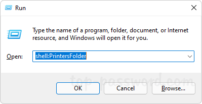 shell:PrintersFolderși faceți clicBine.