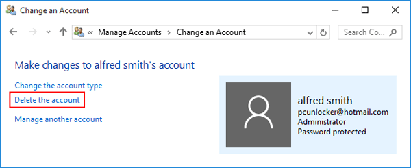 - Din lista de opțiuni, faceți clic peȘtergeți contulopţiune.