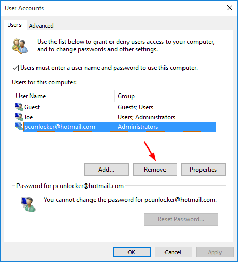 Metoda 2: Eliminați contul Microsoft de conectare din Netplwiz