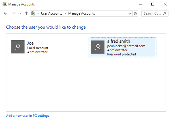 - Acest ecran arată toate conturile aflate în prezent pe computer. Faceți clic pe contul Microsoft pe care doriți să îl ștergeți.