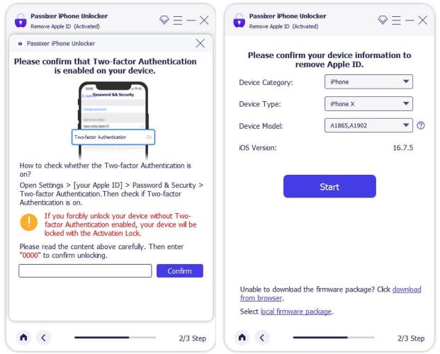 - După ce pachetul de firmware este descărcat, intrați0000din nou și faceți clicDeblocațipentru a începe eliminarea ID-ului Apple.