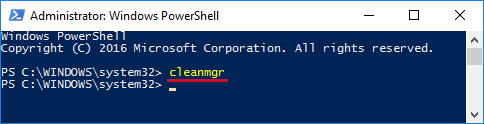 Deschideți PowerShell în Windows 10. Tastațicleanmgrși apăsați Enter.