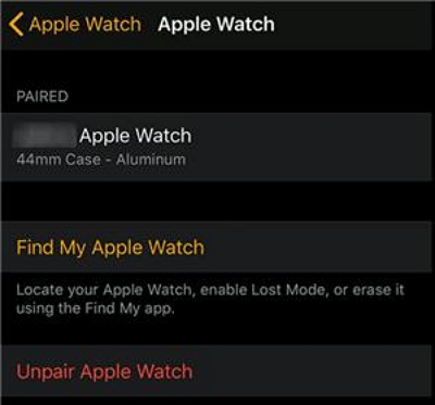Pasul 4:Selectați „Anulați împerecherea Apple Watch” pentru a elimina ceasul de pe iPhone și a dezactiva Blocarea activării.