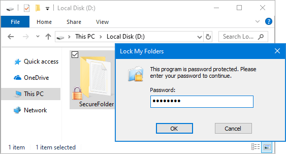 - Când trebuie să decriptați și să accesați din nou folderul securizat, trebuie să introduceți parola principală corectă.