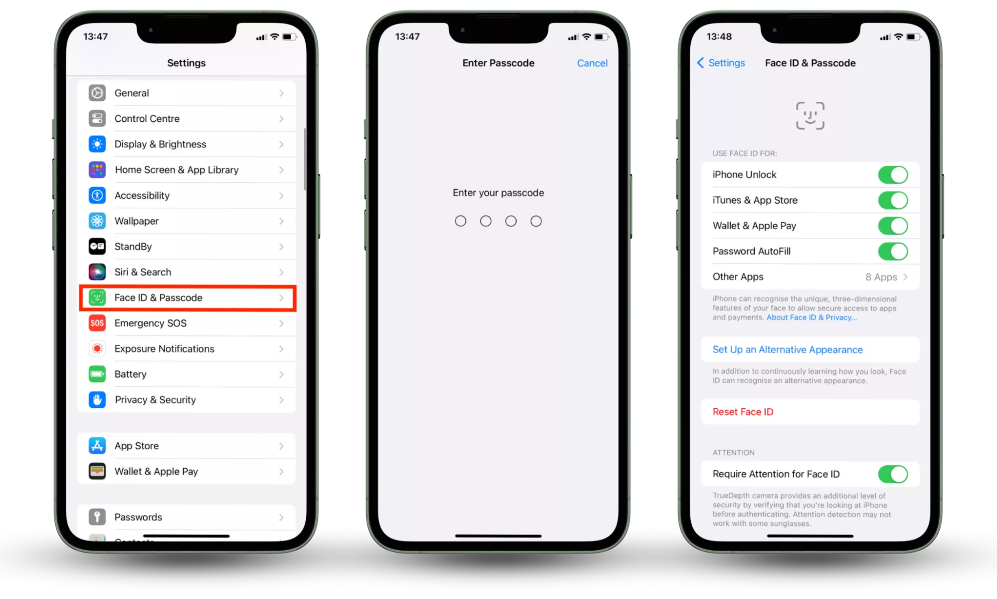 Asigurați-vă că iPhone-ul este întotdeauna securizat cu o parolă puternică sau cu opțiuni biometrice, cum ar fi Face ID sau Touch ID.