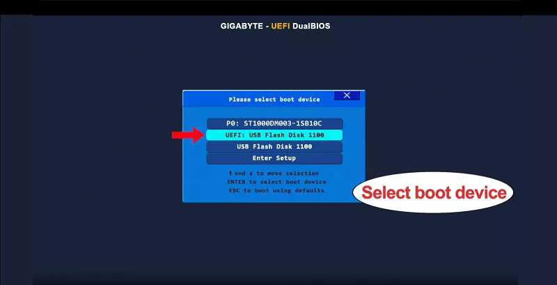 Pasul 1:Conectați driverul USB la computerul defect și reporniți-l. Apăsați tastele rapide pentru