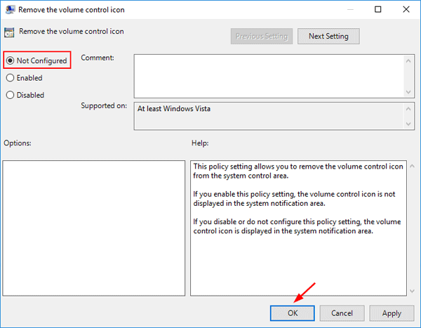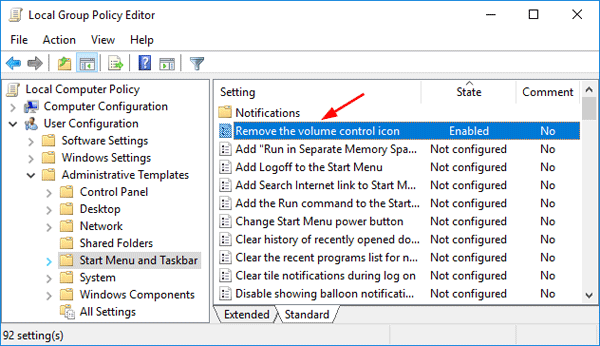Dacă este inactivă, trebuie să activați pictograma de sunet Windows 10 folosind următoarea politică de grup sau hack de registry.