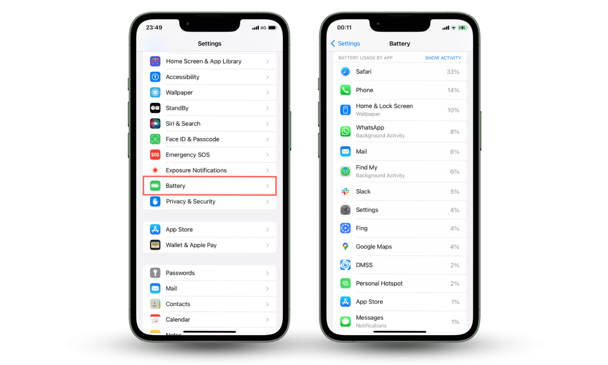 Pașii 1-2: Accesați Setări > Baterie (Android și iOS) și verificați dacă există aplicații consumatoare de energie.Nota