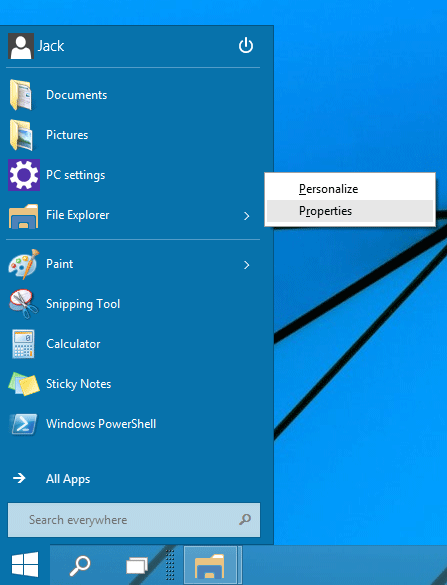 Personalizați meniul Start