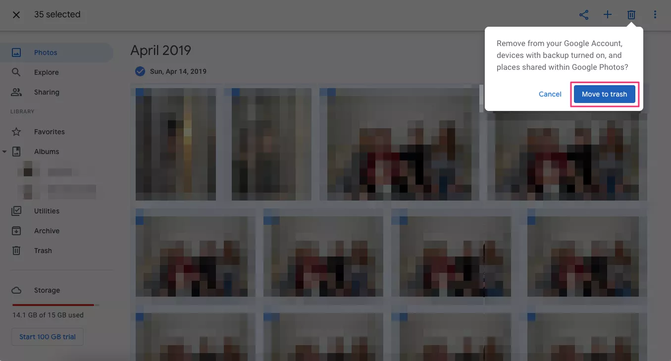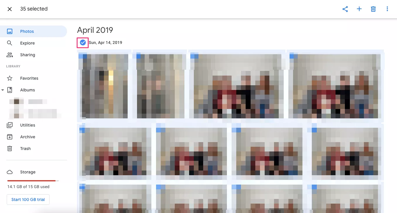 - Selectați fotografiile pe care doriți să le ștergeți și faceți clic pepictograma coșîn colțul din dreapta sus.