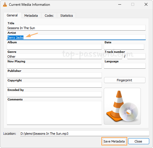 Metoda 2: Editați metadatele muzicale utilizând VLC Media Player