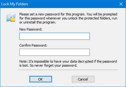 Prima dată când lansați programul, acesta vă va solicita să creați o parolă principală care este utilizată pentru a cripta și bloca/debloca folderele dvs. securizate.