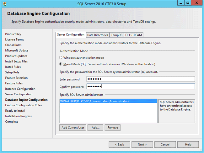 SQL Server 2016 Community Technology Preview 3.0 (CTP 3.0) a fost lansat publicului pe 28 octombrie și am descărcat o nouă copie pentru a începe să o încerc. În acest articol, voi explica, pas cu pas, cum să instalați instanța SQL Server 2016 CTP 3.0 pe un sistem Windows Server 2012 R2.