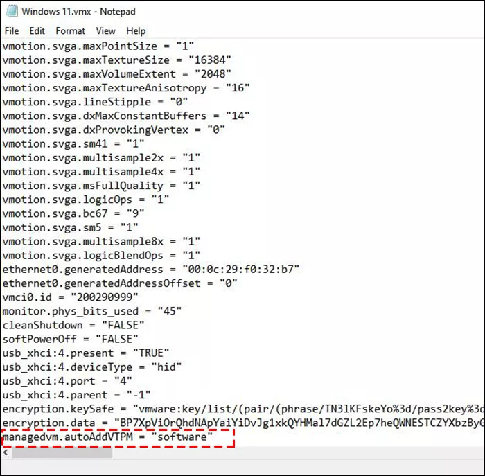 5: Adăugațimanagedvm.autoAddVTPM = „software”pe notepad și salvați-l.