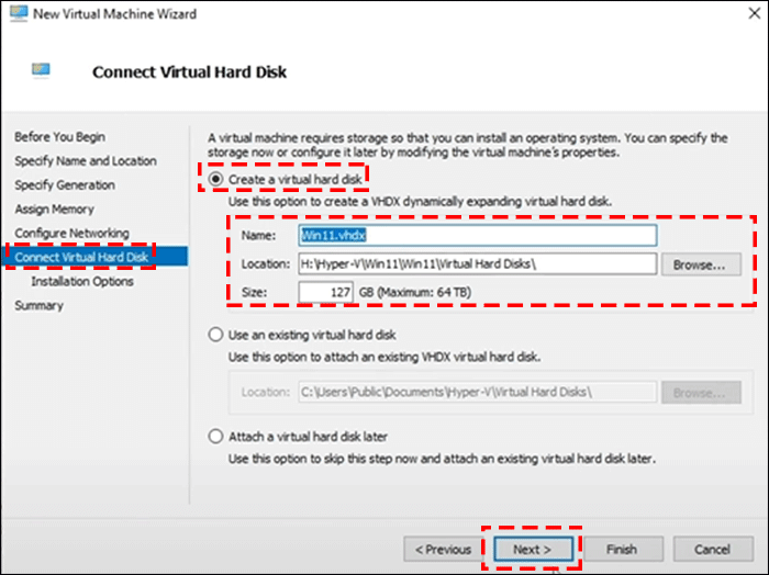 Pasul 7: Creați un hard disk VHDX și faceți clic pe „Următorul”.