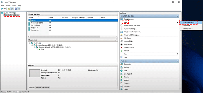 Pasul 2: Deschideți gestionarea Hyper-V și creați o nouă mașină virtuală.