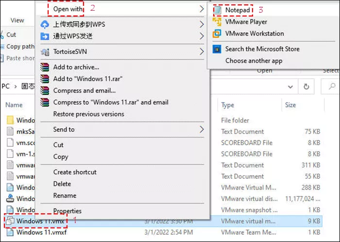 4: Găsiți fișierul cu extensia .vmx și deschideți cu notepad.