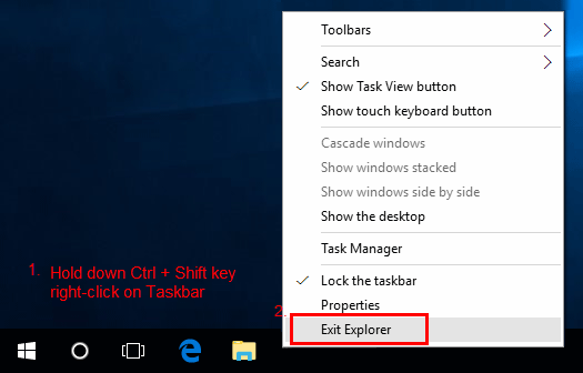 Pasul 1: Apăsați butonulCtrl + Shifttaste, apoi faceți clic dreapta peMeniul StartsauBara de activități.