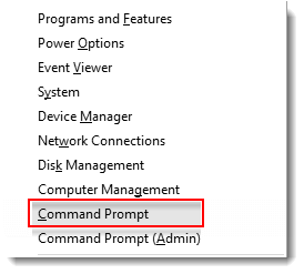PresaCâștigă + Xtastele de comandă rapidă, apoi faceți clicPrompt de comandăînmeniul Legături rapide.