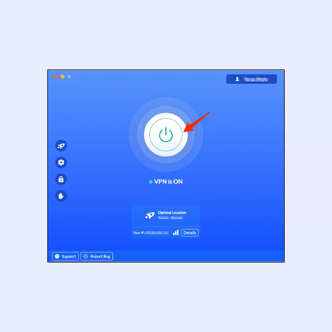 7. Porniți VPN-ul prin comutarea comutatorului.