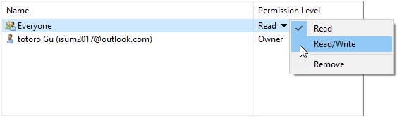 - Citiți/Scrieți– Utilizatorii sau grupul pot vizualiza, citi, modifica sau șterge elementul partajat.