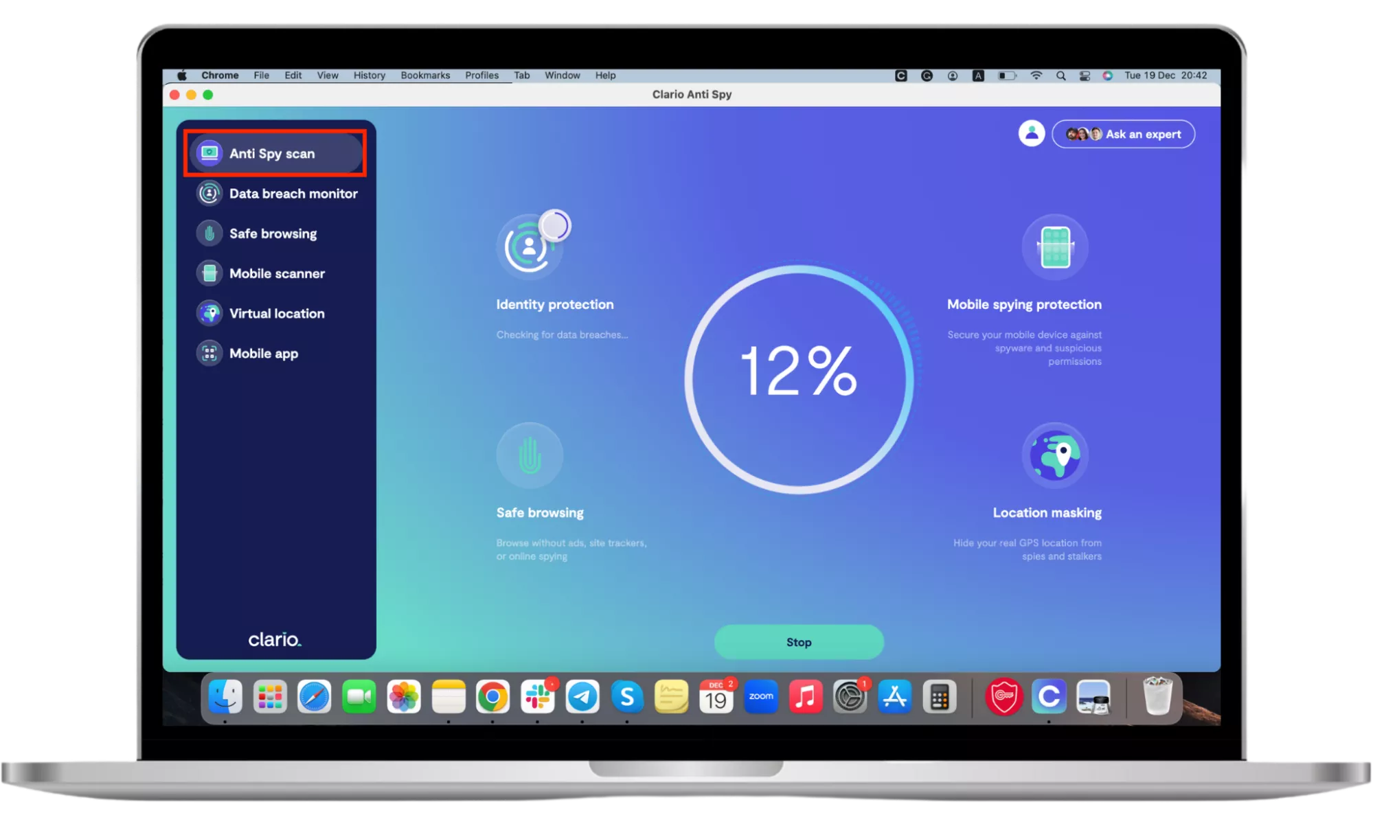 - Așteptați ca Clario AntiSpy să execute verificările. Vă va anunța dacă sunt găsite amenințări și vă va ajuta să le eliminați.