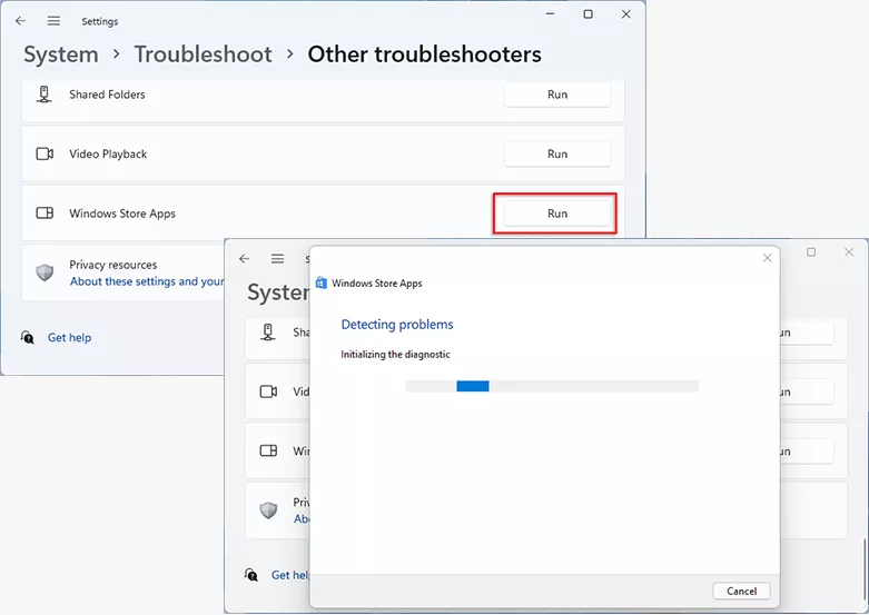 Pasul 4:SelectaFugiîn aplicațiile Windows Store, apoi programul va începe detectarea