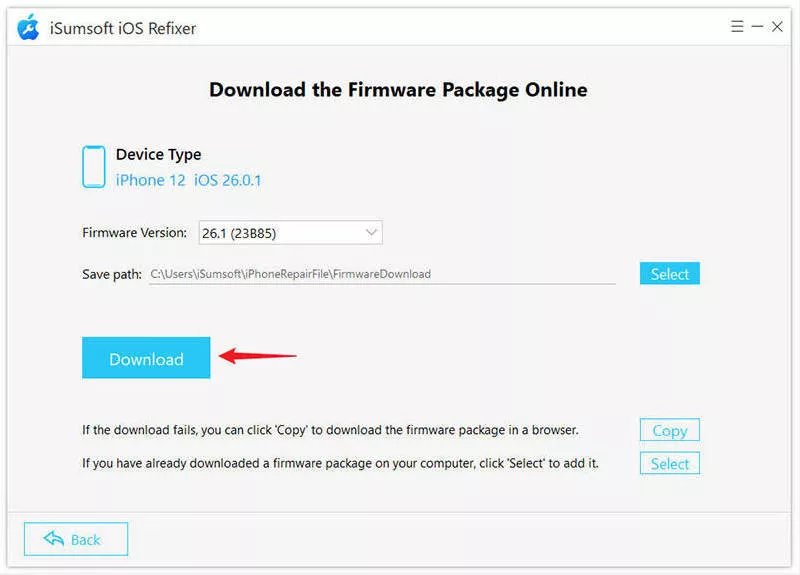 5. Faceți clic pe Descărcare pentru a descărca cel mai recent pachet de firmware pentru iPhone.