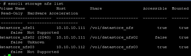 Vizualizați lista volumelor NFS disponibile pe gazda VMware ESXi:# esxcli storage nfs list