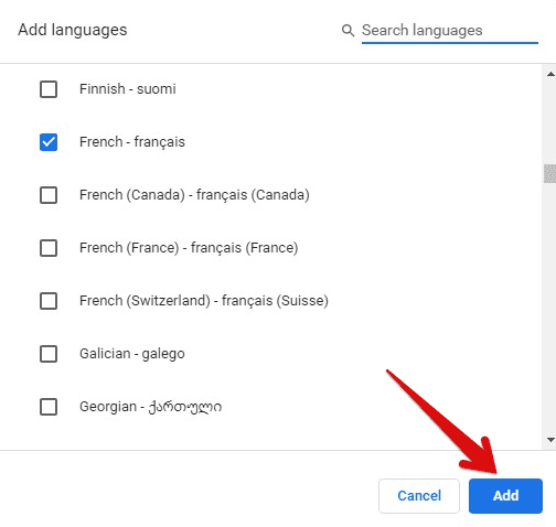 5. Va apărea o casetă de dialog pop-up, alegeți orice limbă în funcție de nevoile dvs. și faceți clic pebutonul Adaugă.