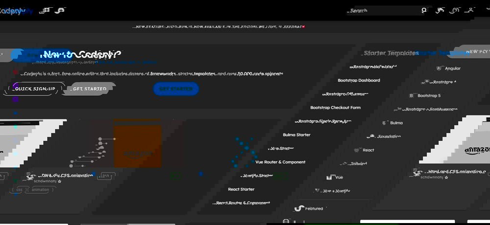 La baza ei,CodePen'sun editor de cod online în timp real. Proiectele și fragmentele de cod se numesc Pens. Atâta timp cât vă creați un cont gratuit, aveți libertatea de a răsfoi Penuri publice, care variază de la proiecte complete la funcții mai mici. Platforma se concentrează în principal pe limbi front-end.