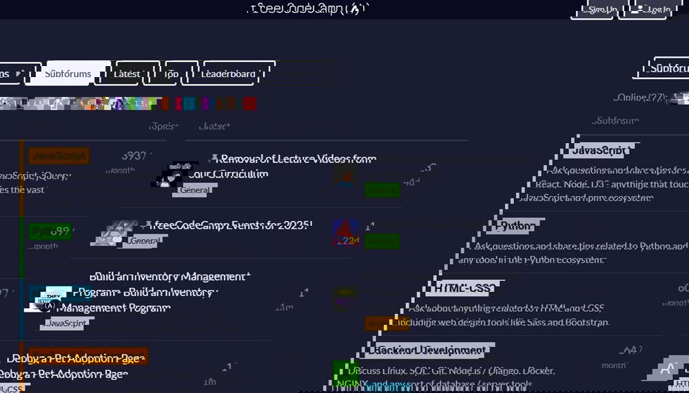 freeCodeCamps-ar putea să nu fie o bibliotecă de cod tradițională, dar miile de ore de tutoriale sunt pline de fragmente pentru a ajuta la lansarea proiectelor. Adevărata bijuterie este forumul.Subforumuri dedicatepentru JavaScript, Python, HTML și CSS, C# și dezvoltarea backend sunt umplute cu cod pentru a vă ajuta cu propriile proiecte.