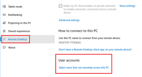 Nota: Începând cu Remote Desktop Client 6.0, conexiunile Remote Desktop funcționează numai cu autentificarea la nivel de rețea. Dacă nu doriți să partajați acreditările de administrator, accesați Setările desktop la distanță și faceți clic pe „Selectați utilizatorii care pot accesa acest computer de la distanță” și personalizați-l pentru dvs. Există, de asemenea, opțiuni pentru a scăpa de această restricție.