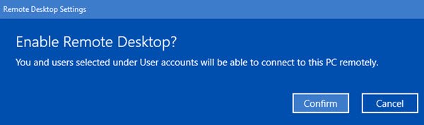 Nu uitați să faceți clic pe „OK” la sfârșitul tuturor pentru a activa Conexiunea Desktop la distanță.