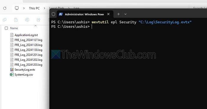 wevtutil epl Security "C:\LogsSecurityLog.evtx"