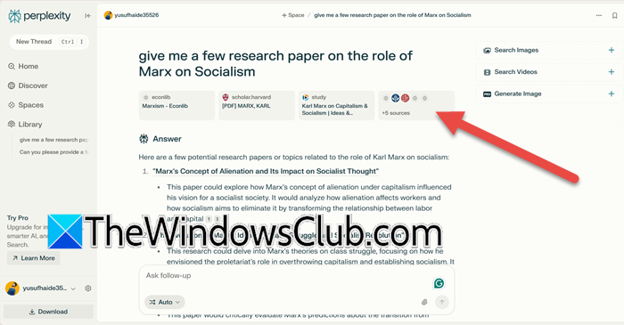 De asemenea, puteți cere Perplexity să citească lucrări pentru dvs., acesta trebuie să fie unul dintre cele mai tari lucruri despre acest instrument AI. Deci, dacă faceți doar clic pe butonul Pin, apoi atașați lucrarea, oferiți-i un prompt, Perplexity o va citi și apoi vă va oferi răspunsul pe baza acestui lucru.