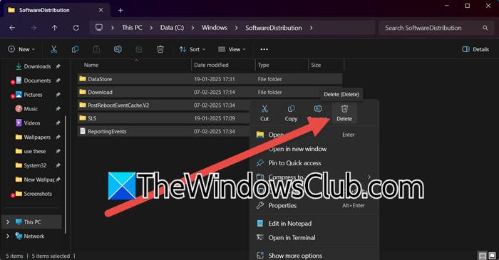 Deschideți File Explorer și navigați la C:\Windows\SoftwareDistribution. Apoi, trebuie să ștergeți toate fișierele și folderele din folderul SoftwareDistribution. Alternativ,sau altceva.