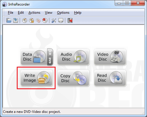 - När InfraRecorder öppnas klicka påSkriv bildknapp.
