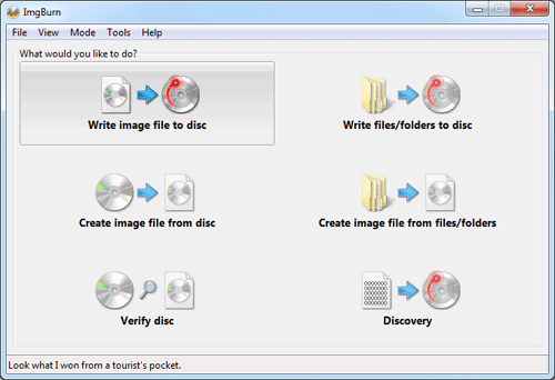 - Starta ImgBurn-programmet och väljSkriv bildfil till skiva.