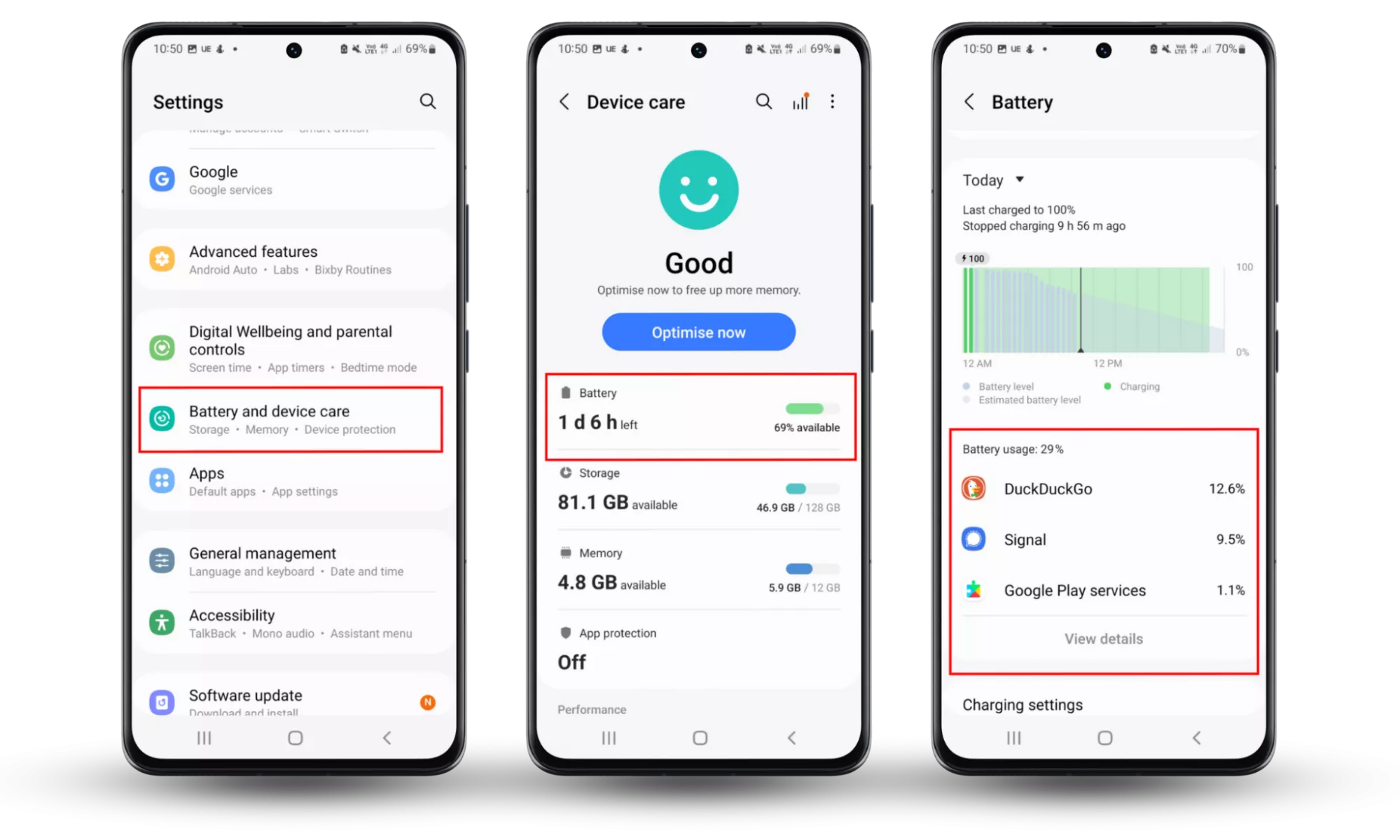 Följ de här stegen för att kontrollera om det finns toppar i batteriprestanda och vilka appar som tömmer din Android-enhet: