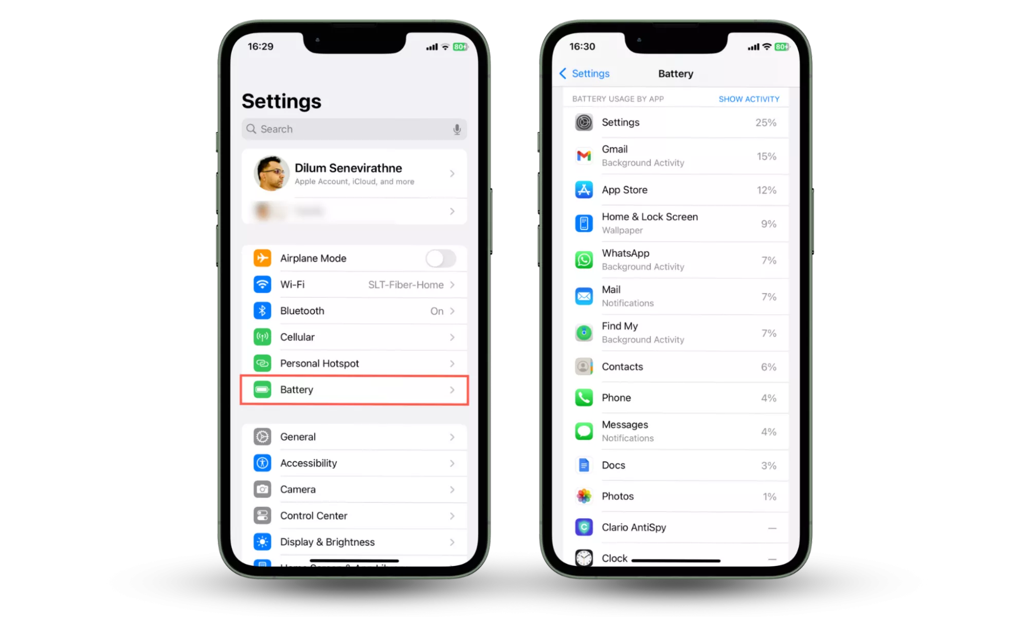 - Kontrollera om det finns toppar för batterianvändning och appar som du inte känner igen.
