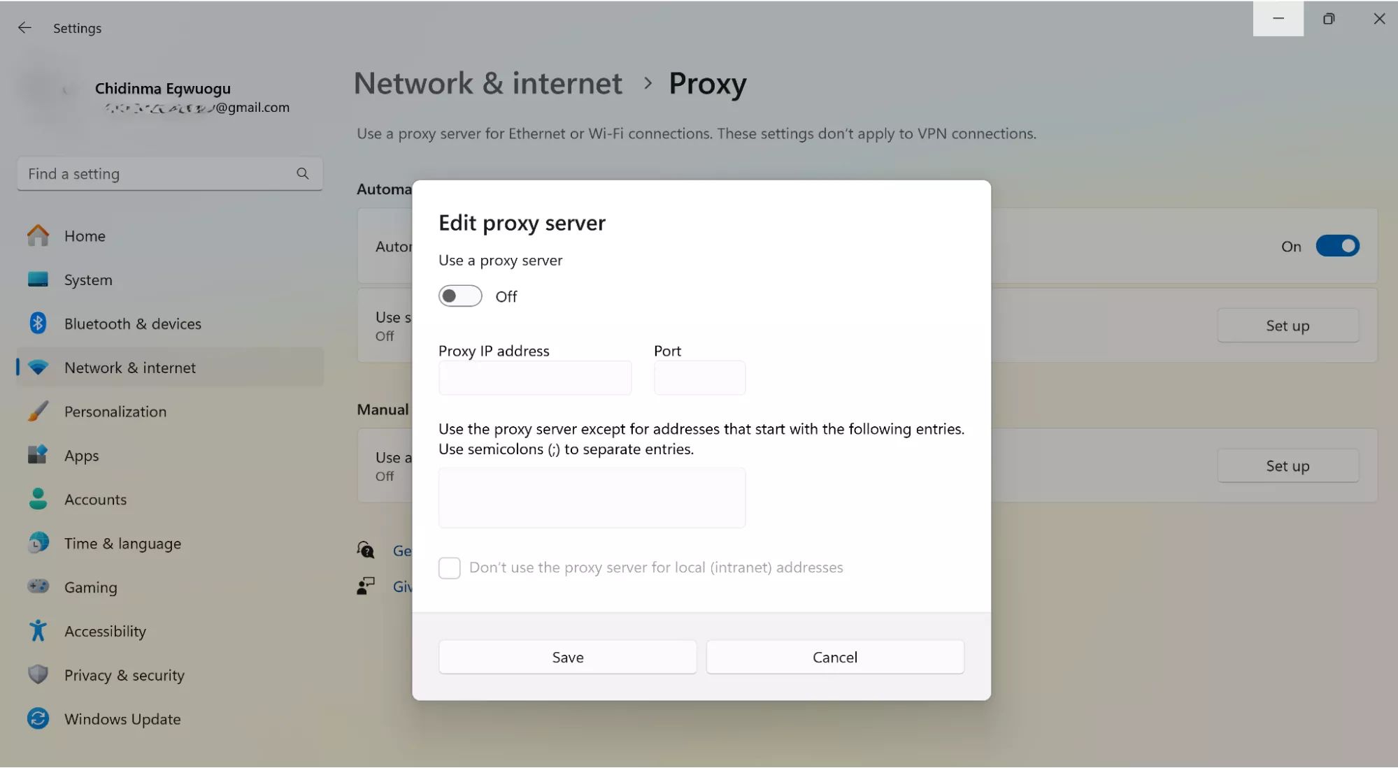 - Slå påAnvänd en proxyserver.