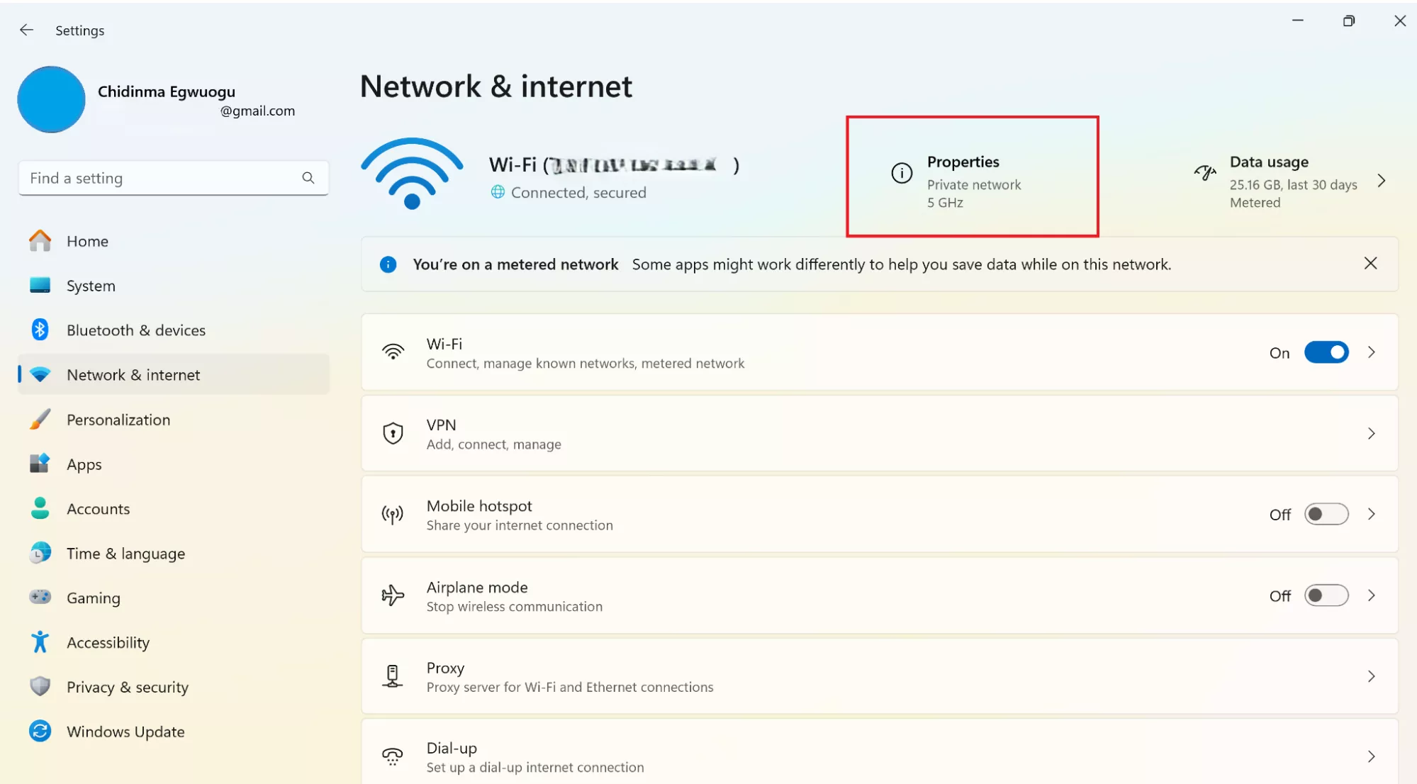 Steg 1-3: Inställningar > Nätverk och internet > Egenskaper.