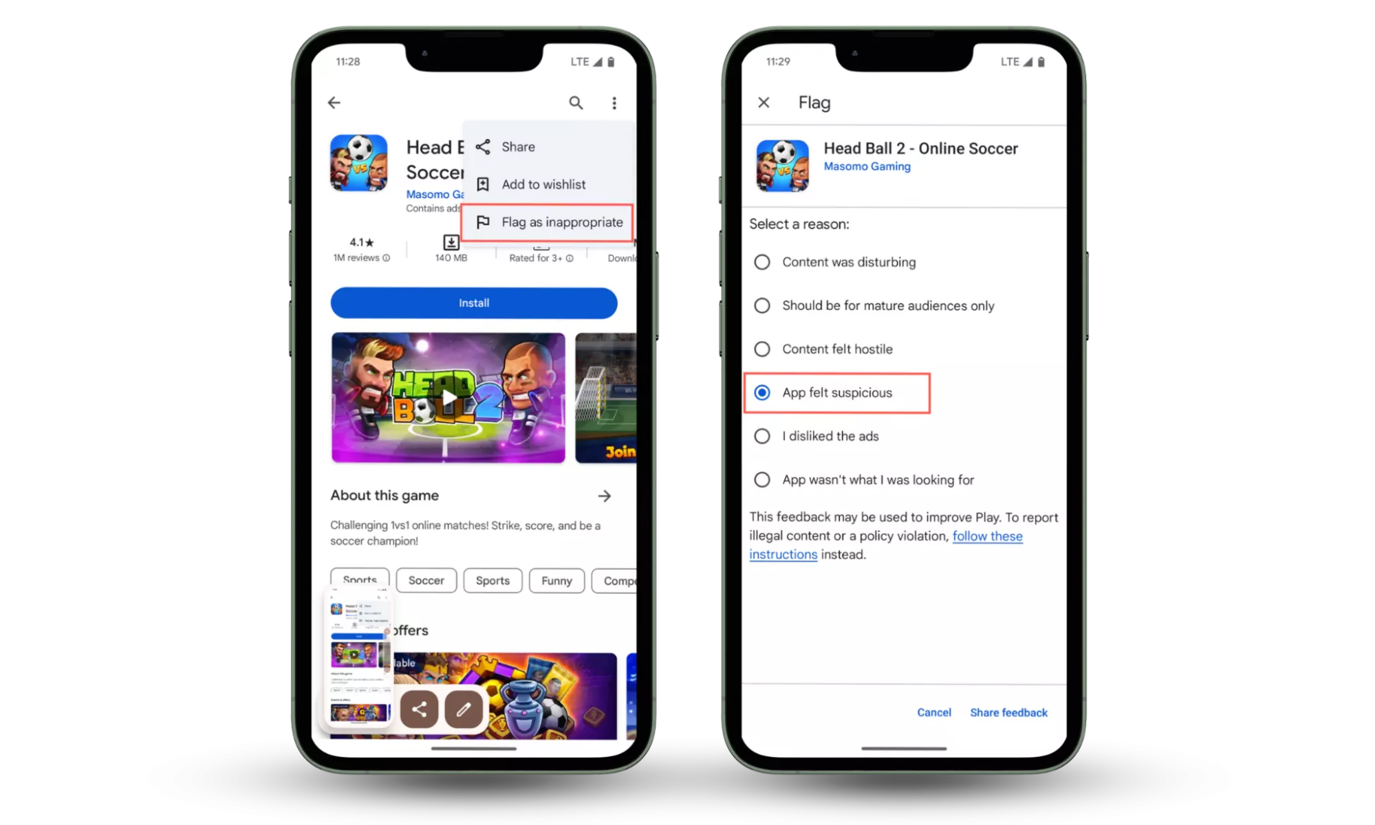 Steg 1-3: Tryck på Mer > Flagga som olämpligt på butikssidan för en app för att rapportera det till Google.Vad mer kan du göra?