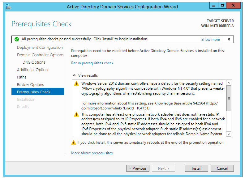 - Guiden kommer att utföra en förutsättningskontroll innan installationen kan fortsätta. När kontrollen är klar klickar du på Installera.