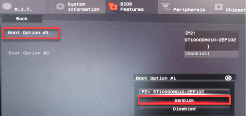 Således kan du välja USB eller DVD som den första enheten att starta från. TryckaSkriva intryck sedan påF10för att spara ändringarna och avsluta.